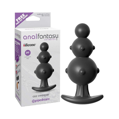 Anal Fantasy Collection Ass-Gasm Silicone Cock Ring with Anal Beads - Black