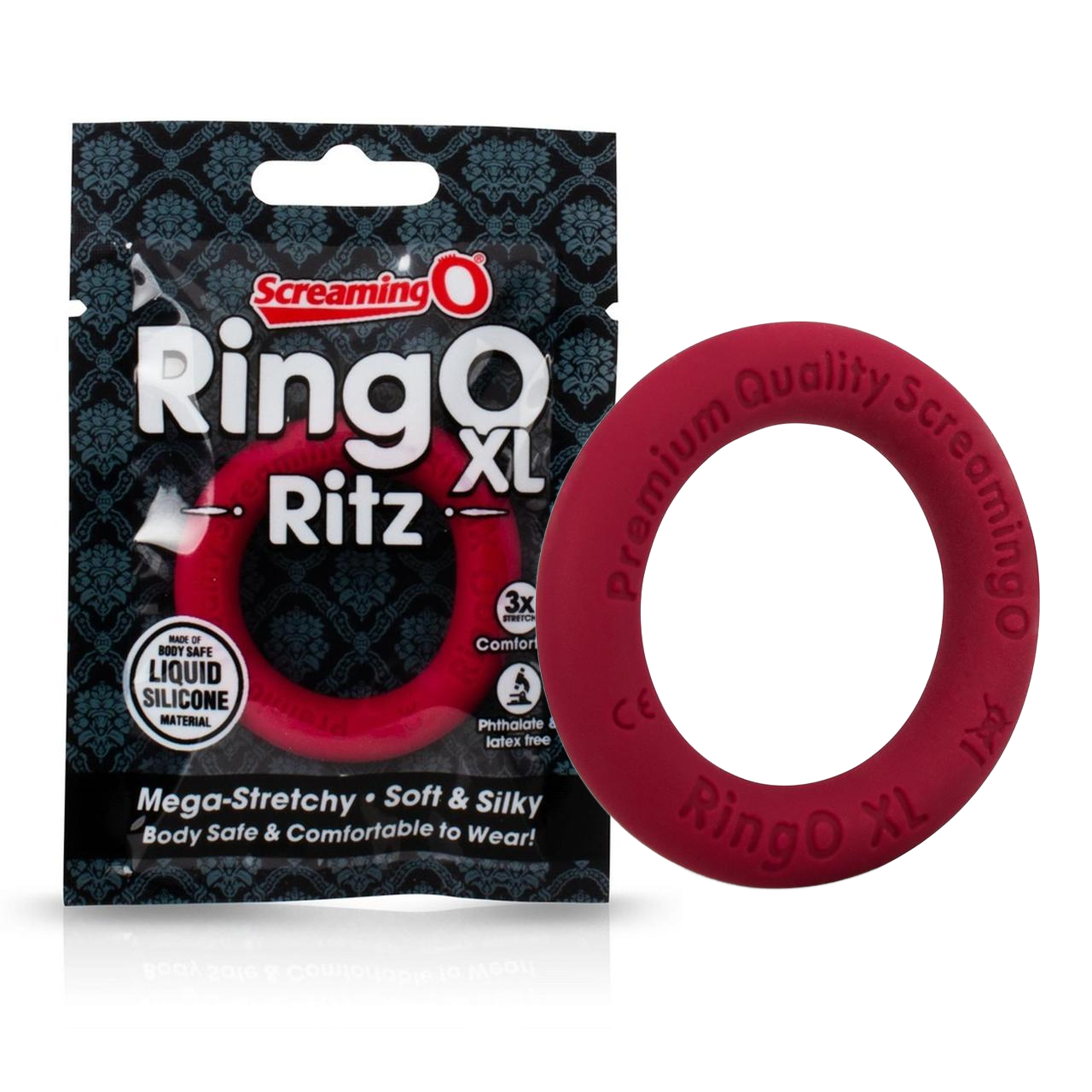 The RingO XL is the innovative liquid silicone cock ring from Screaming O, now in a new larger size. The premium RingO Ritz XL takes all your favorite qualities from the bestselling original RingO XL and turns up the luxury by crafting it out of sumptuous liquid silicone for a more supple texture and springy hold. 20% larger than the RingO Ritz, the RingO Ritz XL provides a custom, comfortable fit while offering a velvety touch and pliable feel. Phthalate and latex free, premium body-safe liquid silicone is easy to care for with soap and warm water and will keep its texture and shape for years of enjoyment. Also available in blue and black.