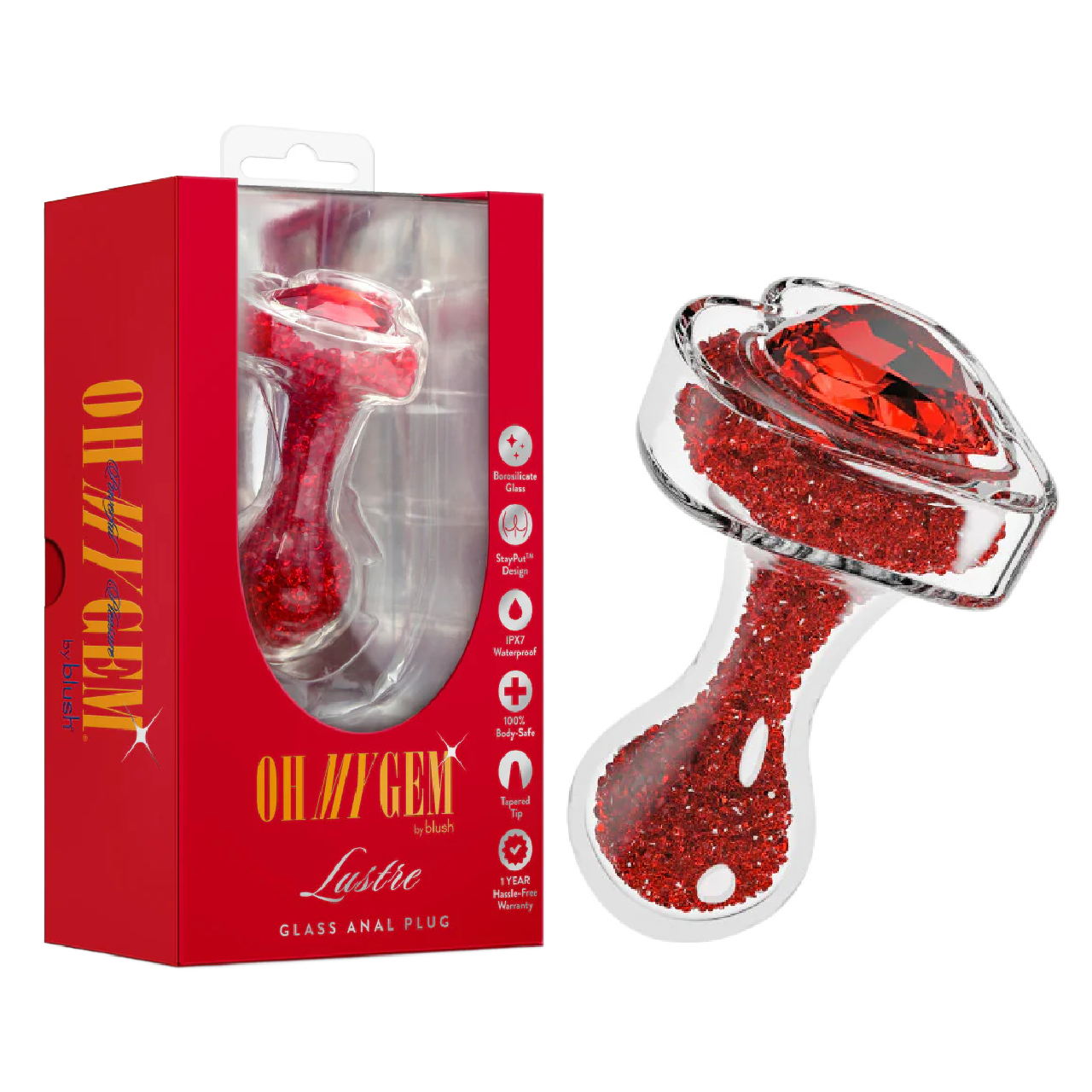 Radiate beauty with Oh My Gem Lustre, a luxurious anal plug inspired by the rich energy of the ruby gemstone. Meticulously crafted from premium borosilicate glass, Lustre’s smooth, rounded bulbous tip provides increased stimulation and a satisfying sense of fullness, making every moment more indulgent. Designed for elegance and excitement, its dazzling ruby-adorned heart-shaped base adds a touch of sophistication to every experience. Blush’s signature StayPut™ design ensures a secure, comfortable fit, while the pristine glass surface delivers satisfying pressure and precise stimulation. Perfect for temperature play, Lustre invites you to explore warm or cool sensations for an extra layer of pleasure. Body-safe, easy to clean, and undeniably beautiful, Lustre is a gem made for indulgence. A radiant addition to any collection, designed to captivate, comfort, and inspire intimate exploration.