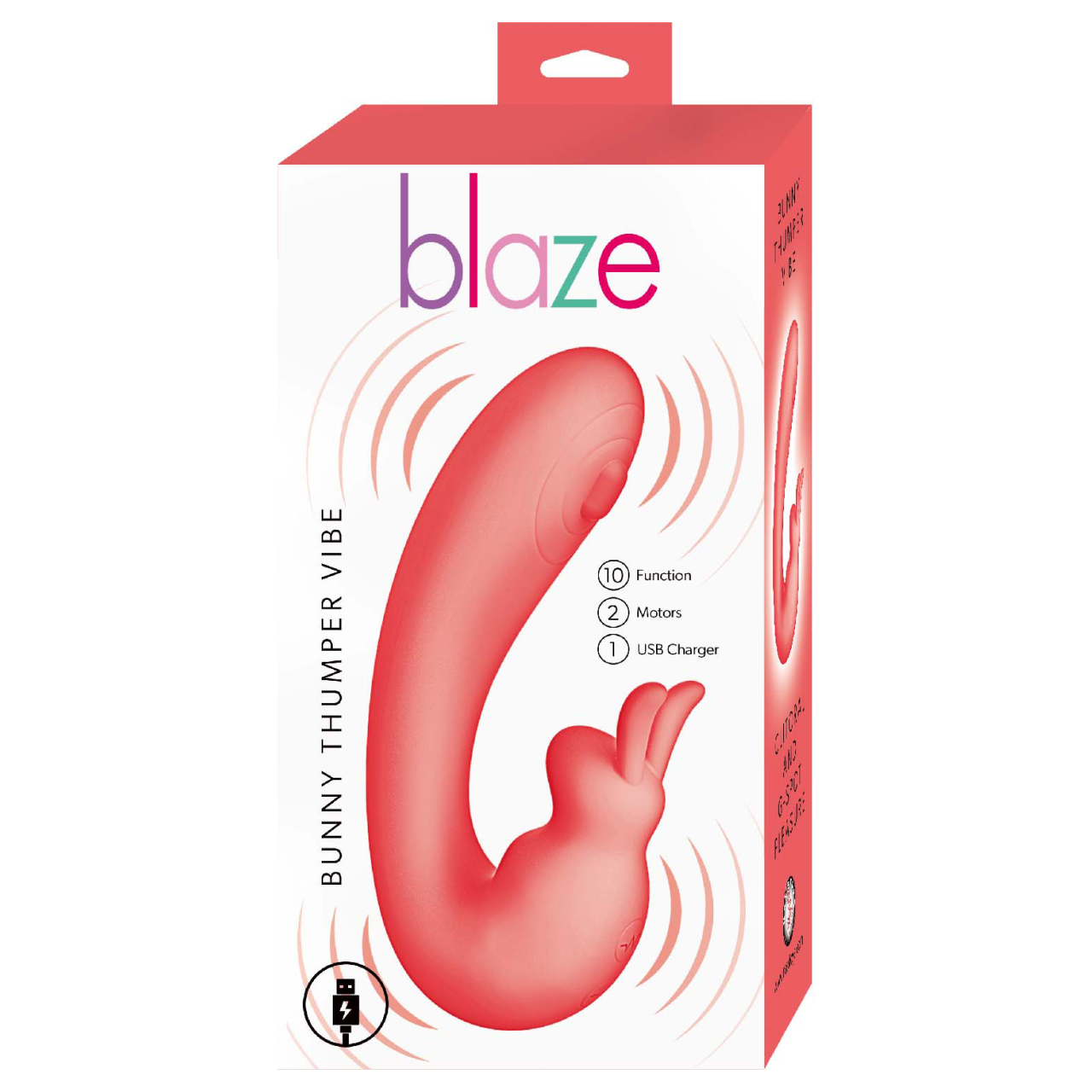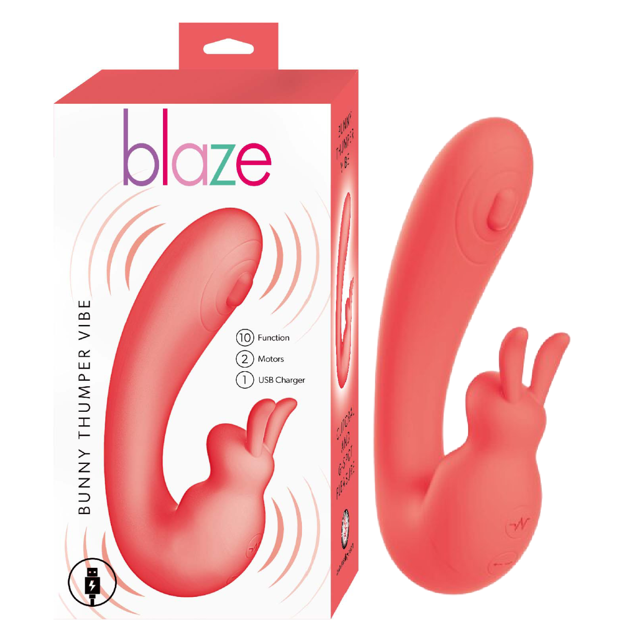 The Nasstoys Blaze Bunny Thumper Vibe is the ultimate pleasure companion designed to ignite your senses! This USB rechargeable rabbit-style dual stimulator boasts 10 incredible vibrating functions and two powerful motors, ensuring you experience intense and varied sensations every time. The playful bunny-style external stimulator features fluttery ears that tantalize and tease, while the ergonomically curved internal arm targets your G-spot or P-spot with precision. Adding to the excitement, the internal stimulator includes a unique thumper pad for extra stimulation, making your pleasure sessions truly unforgettable. The Blaze Bunny Thumper Vibe is made from body-safe silicone, providing a soft, smooth feel that’s gentle on your skin. It’s also backdoor safe, offering versatility in your play. For the best experience, charge the vibe fully before your first use to ensure the battery is primed and ready. Always use a water-based lube for added comfort and enhanced sensation. Cleaning is simple with toy cleaner or mild antibacterial hand soap, keeping your vibe in perfect condition. Quiet yet powerful, the Nasstoys Blaze Bunny Thumper Vibe is your go-to for elevated pleasure and exploration.
