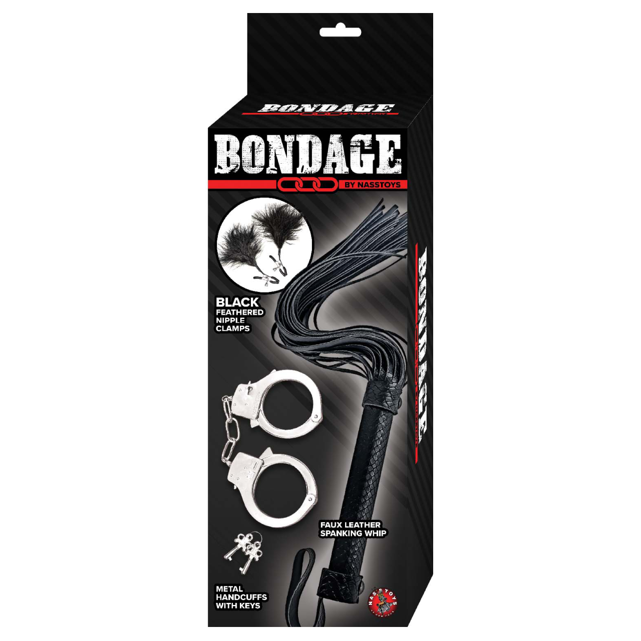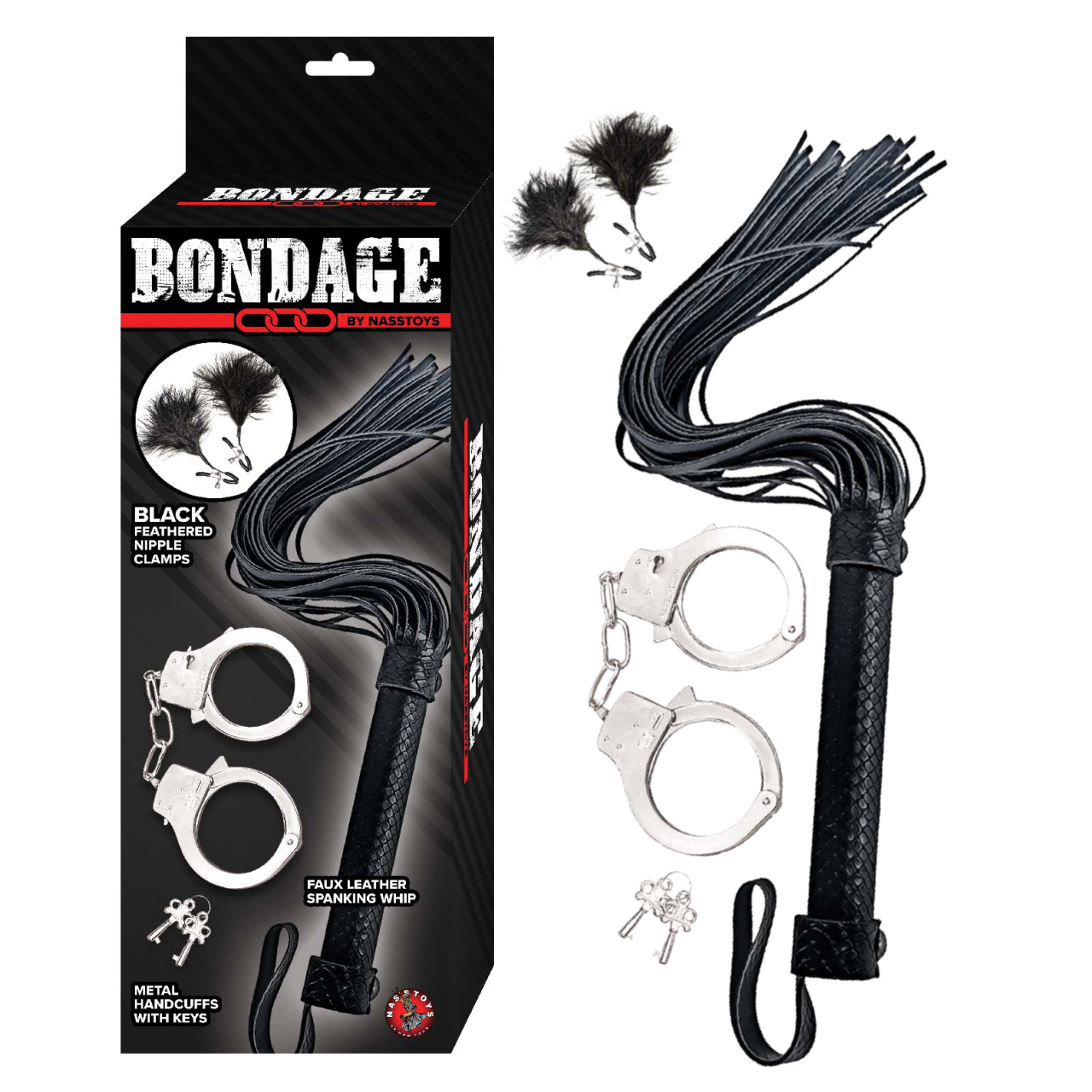BONDAGE BY NASSTOYS WHIP, FEATHER & CUFFS-BLACK