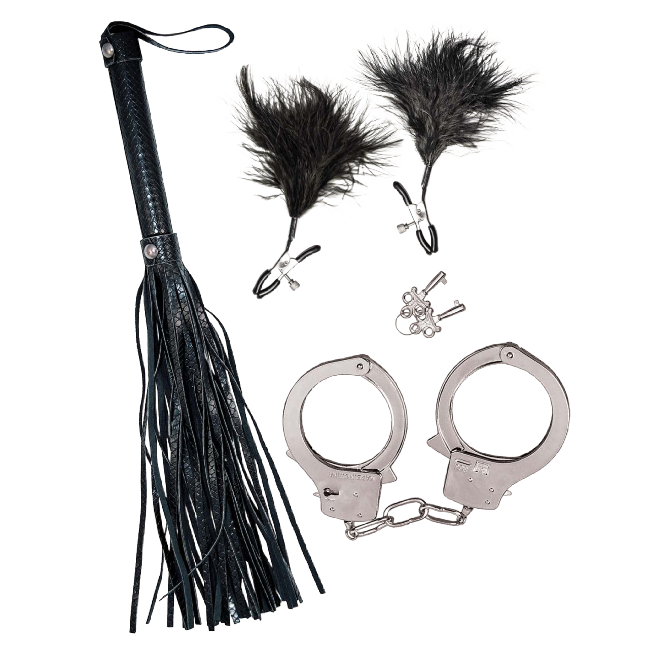 Introducing the Nasstoys Bondage Kit—the perfect blend of playful exploration and thrilling sensations, designed especially for beginners. Unleash your desires and dive into the world of bondage with confidence, courtesy of this thoughtfully curated kit. Whether you’re a newcomer to the world of bondage or a seasoned explorer, the Nasstoys Bondage Kit is an excellent choice for those seeking a gentle introduction. Discover the excitement of restraint and sensory play with this carefully crafted set. Experience the thrill of being bound with the included quick-release metal handcuffs. These cuffs provide a secure yet easily removable restraint, ensuring safety and comfort throughout your playtime. Elevate your sensory experience with tantalizing nipple clamps adorned with soft red feathers. Perfect for adding an extra layer of sensation, these clamps allow you to explore the delightful balance between pleasure and a gentle, teasing touch. Unleash your inner desires with the faux leather flogger, designed to deliver a satisfying combination of pleasure and playfulness. The gentle swish of the flogger against the skin adds an exciting element to your intimate moments. The Nasstoys Bondage Kit is compact and discreet, making it an ideal companion for travel or spontaneous adventures. Bring a touch of excitement to any setting with this easily storable and transportable set.
