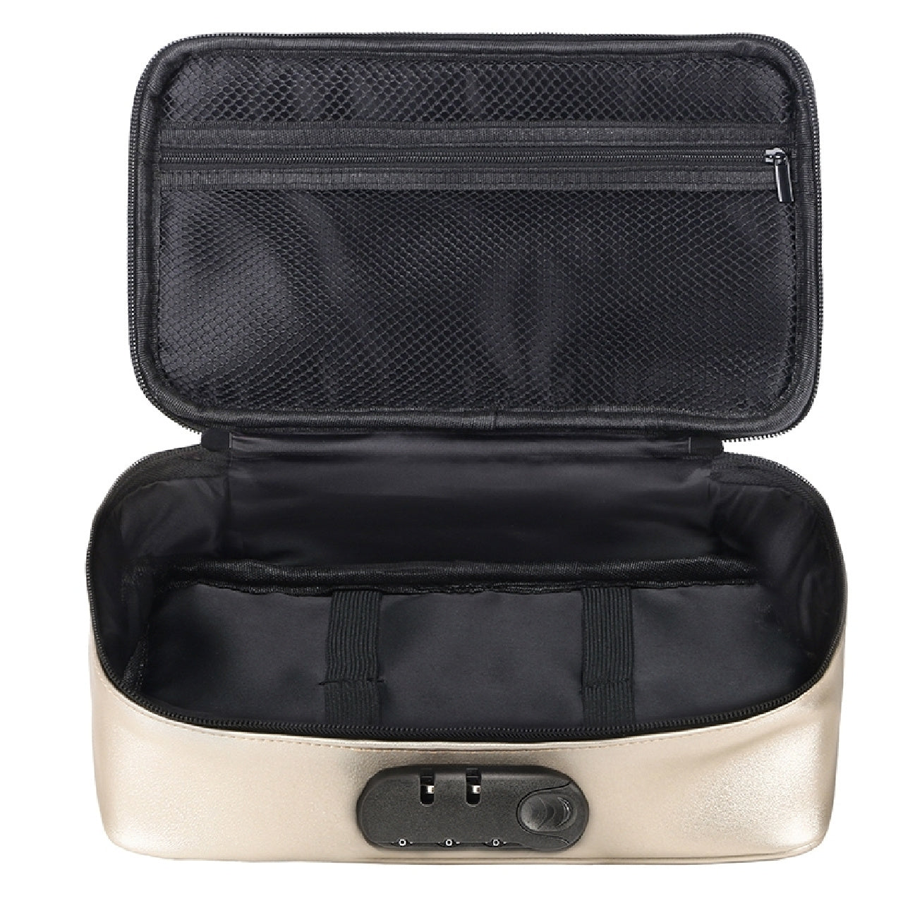 Because your secrets are your own business, the Discreet Box can be locked with an integrated padlock with a customizable code. Rest assured ,you won't risk losing the keys. Its large storage capacity 4-5 medium-sized toys allows you to keep all your favorite toys all your favorite toys within easy reach. Its sober and refined black look allows it to pass incognito in your room, your bathroom or your suitcase. The internal pocket and the elastic bands inside keep your accessories and accessories and cleaning products perfectly in place.