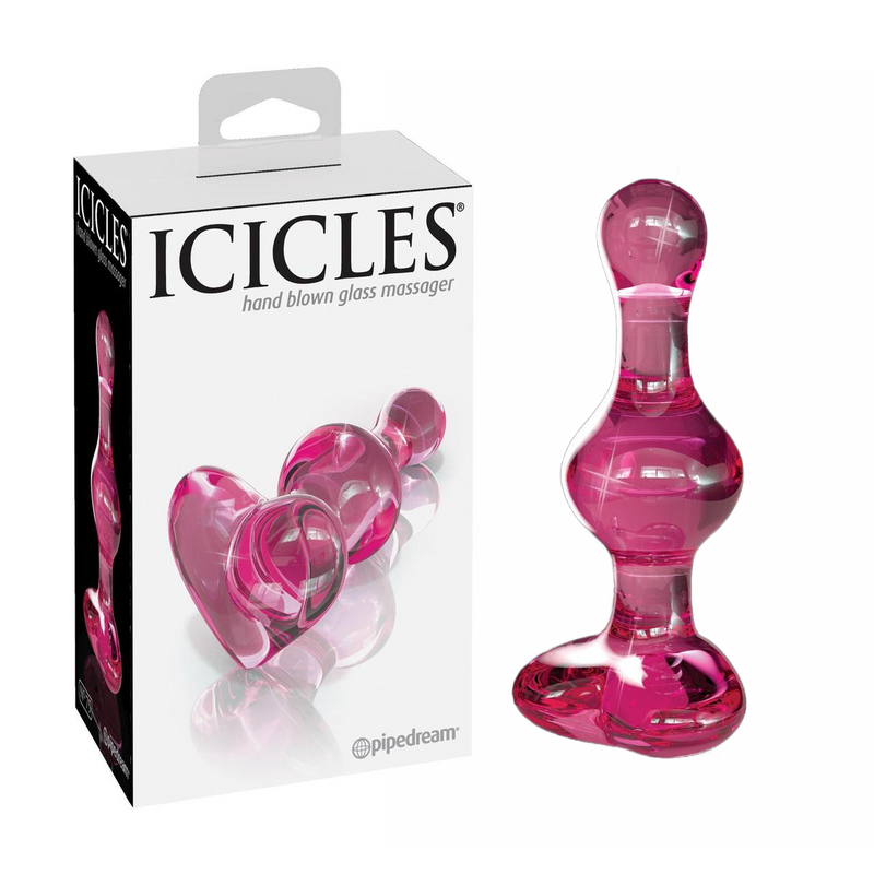 Icicles No. 75 Beaded Heart Shaped Glass Anal Plug - Pink
